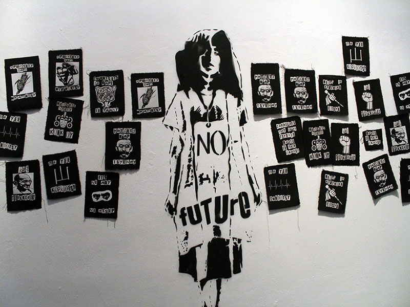 Acompaña a dicho video una serie de parches serigrafiados que replican la iconografía proveniente de la indumentaria punk urbana, que contienen fragmentos escritos en mixe del canto mencionado; complementados con una serie de imágenes en alto contraste provenientes de diferentes referencias.
